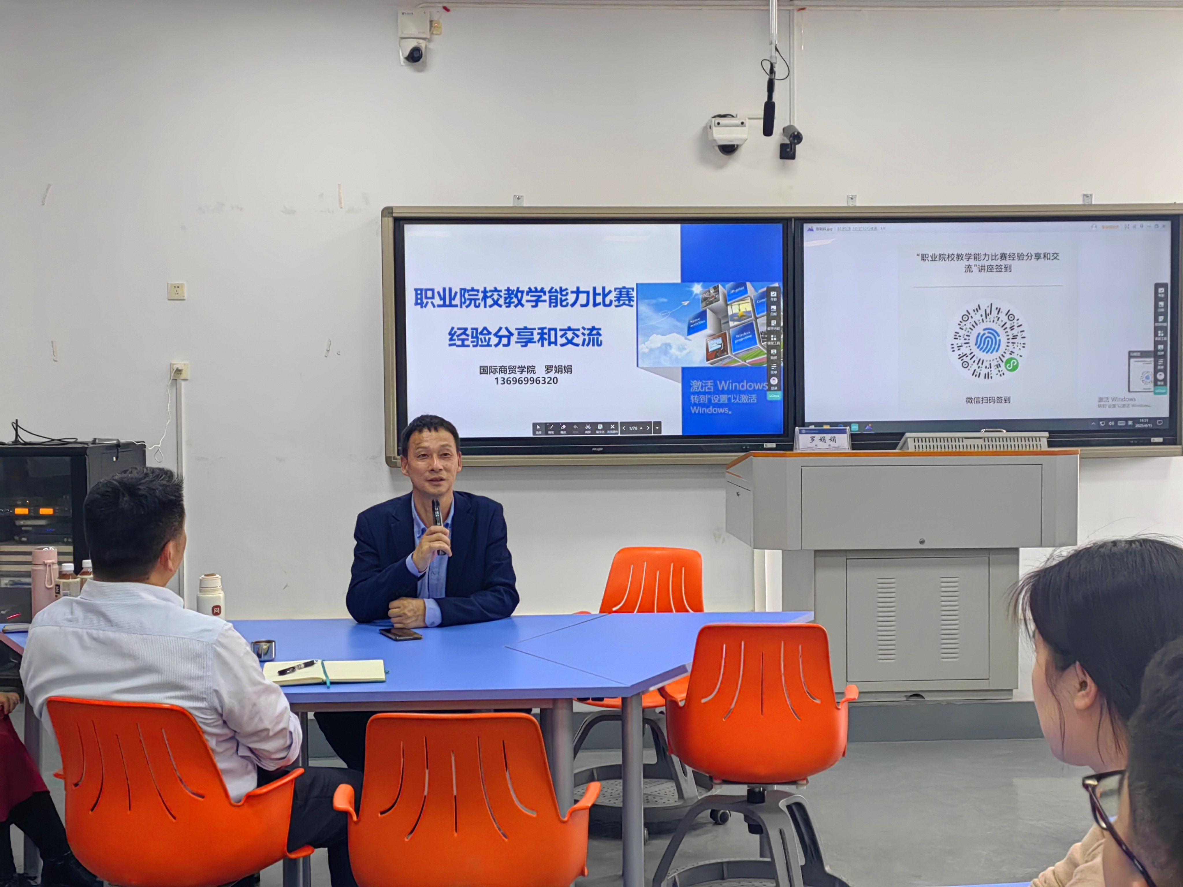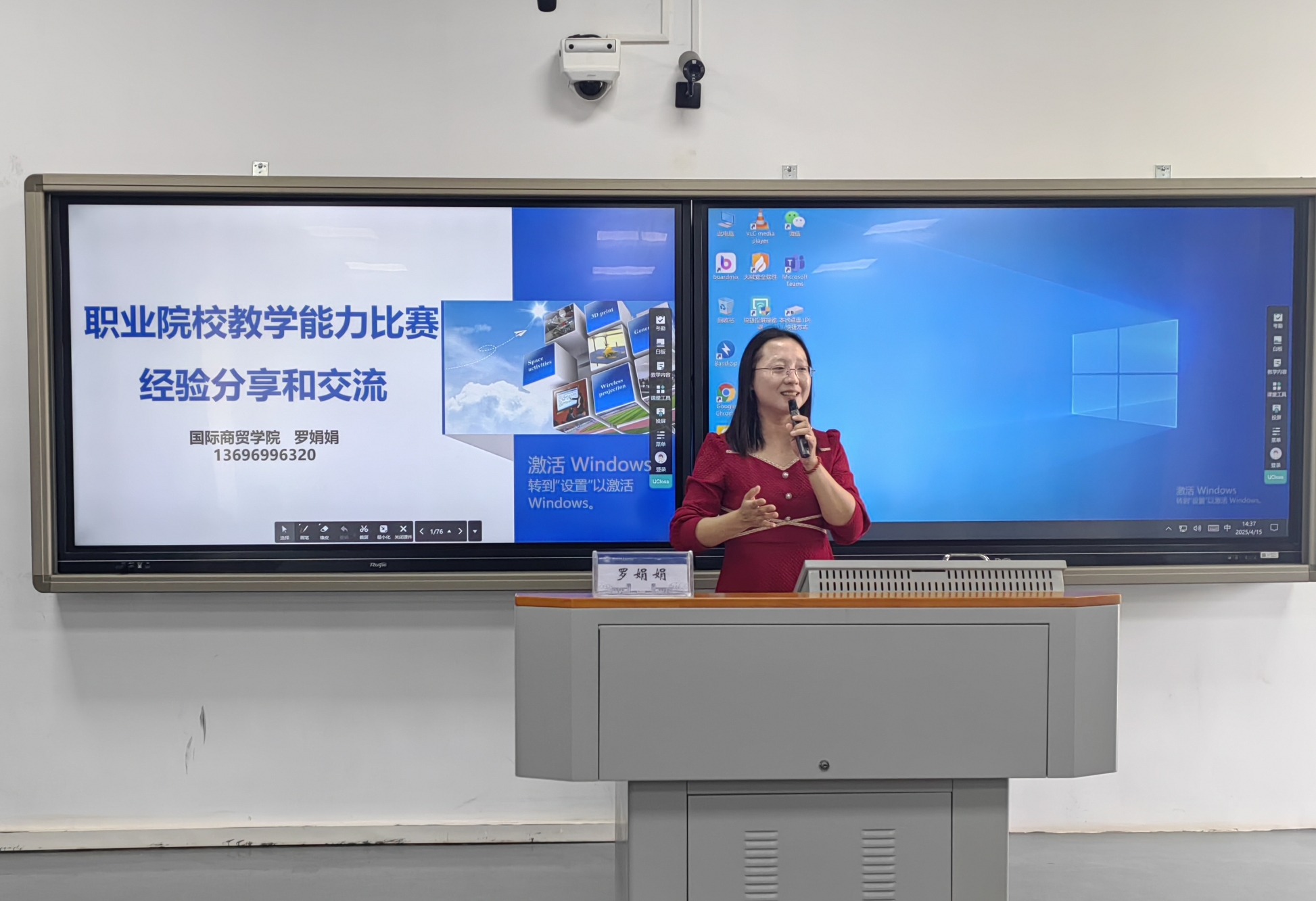 为进一步提升我校教师教学能力,助力教师备战职业院校教学能力比赛,我校教务处、人事处和国际商贸学院于2025年4月15日联合举办了“职业院校教师教学能力比赛”经验分享和交流会。本次分享嘉宾为2024年福建省职业院校教学能力比赛一等奖获得者、我校国际商贸学院副院长罗娟娟老师。
