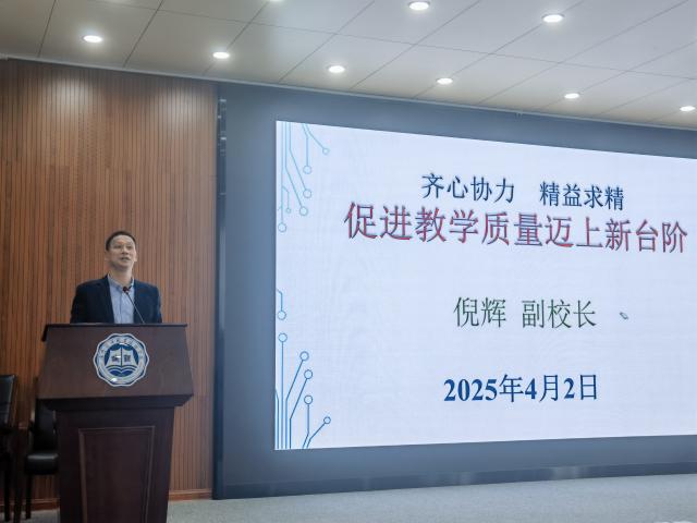 2025年4月2日,我校在T2报告厅召开本学期教学情况通报会,此次会议由校督导团团长宋贵才主持,学校党委委员、副校长倪辉教授、各二级学院院长和副院长、部分专任教师及教务处相关人员参加会议。