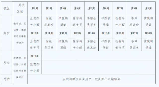 1.每周安排两人检查,巡视时间和区域可自行协商。教务处、各学院院领导也可开展随机巡查,并将巡视表提交教务处周峰。