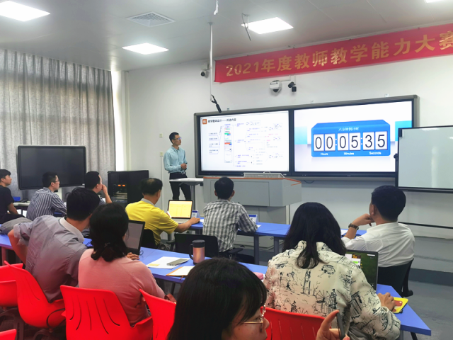 为深入贯彻《关于全面深化新时代教师队伍建设改革的意见》《国家职业教育改革实施方案》文件要求,进一步提升我校教师教学能力和水平,促进教师专业发展,努力锻造一支师德高尚、理念先进、教学设计优、教学效果好、教学能力强的专业教师队伍,4月13日下午,2021年度教学能力大赛现场决赛在众多期盼下拉开帷幕。副校长孙学耕、教务处处长叶小超、各二级学院院领导、专任教师齐聚翔安校区教学楼智慧教室观摩比赛,比赛由教务处副处长周敏主持。